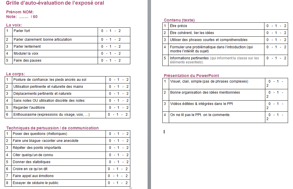 – la capacité à entendre l’évaluation formative des pairs et à en tirer profit pour se corriger lors de l’exposé suivant.
