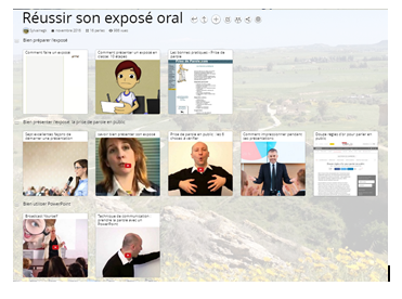 Étant donné que nous travaillons principalement avec des documents authentiques en ligne, il faut également les organiser. Nous avons opté pour l’outil Pearltrees (Figure 3) qui permet de collecter, mémoriser, classer et partager des liens vers des pages Web. Ces marques-pages sont regroupés en collections et organisés en arborescence.