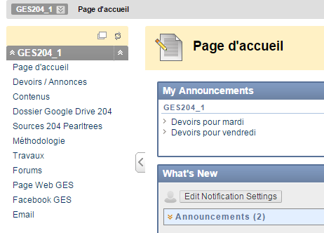 L’Université de Chypre utilise la plateforme pédagogique Blackboard (Figure 1). Les étudiants y sont initiés depuis leur 1re année d’études. Blackboard permet de centraliser l’information, de faciliter la communication entre l’enseignante et le groupe-classe et de gérer les travaux évalués (feedback individualisé et publication des notes). Les étudiants ont, à partir de la page Blackboard, un accès direct à aux dossiers du cours Google Drive de notre cours et à la collection Pearltrees de notre cours.