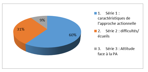 Il apparaît donc au vu des résultats de cette première partie que les pratiques des enseignants ne correspondent pas à la conception de la PA telle que définie dans la littérature. La conception que font les enseignants de cette perspective semble s’approcher plus de l’approche communicative.