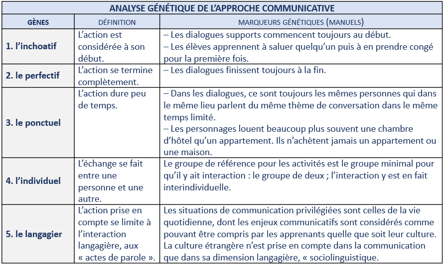 C’est de leur part une erreur historique, comme en commettent fréquemment les acteurs eux-mêmes du changement, particulièrement mal placés pour interpréter leurs actions dans une perspective historique du fait de leur manque de recul. Celle que commettent ainsi Trim et Coste s’explique aussi par le fait qu’ils avaient déjà été des auteurs des Niveaux-Seuils, et parce que la version anglo-saxonne de l’approche communicative était une approche par les tâches (Task Based Learning).