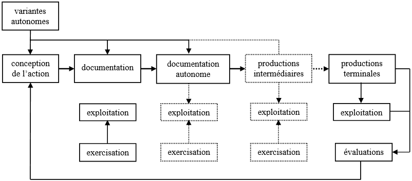 – avant la fameuse « tâche finale », à proposer aux apprenants la prise en charge de la « tâche initiale » qui est la conception du projet (cf. « conception de l’action ») ;