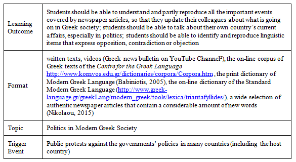 2.1. A teaching scenario for advanced learners of Modern Greek Language