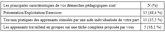Tableau 3 - Démarches pédagogiques des enseignants (N=31)