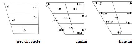 Figure 2 –  Systèmes vocaliques comparés du grec chypriote,